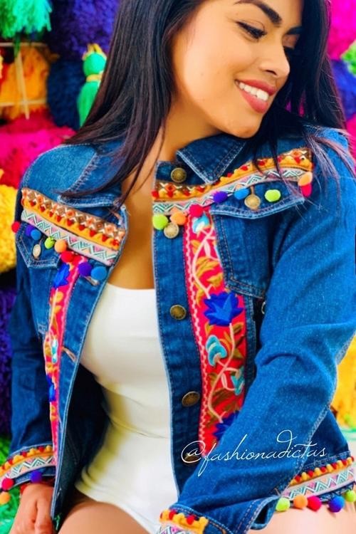 CHAMARRA ZYANYA BORDADA MEZCLILLA.