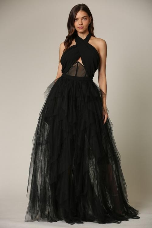 MAXI VESTIDO LUA CORSETTE HALTER TULLE NEGRO